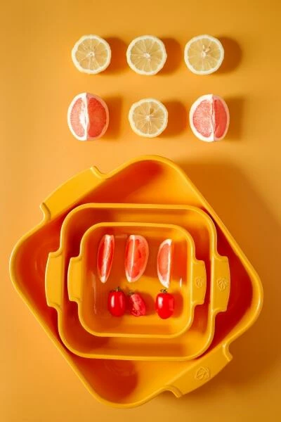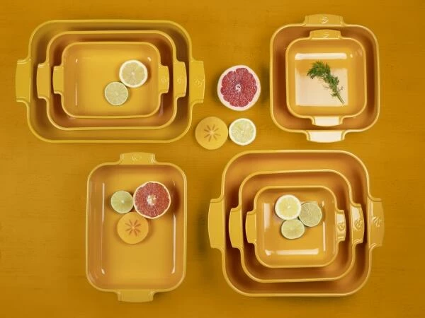 Auflaufform quadratisch in senfgelb. Zu zweit oder mehr – für jeden Anlass die passende Größe.