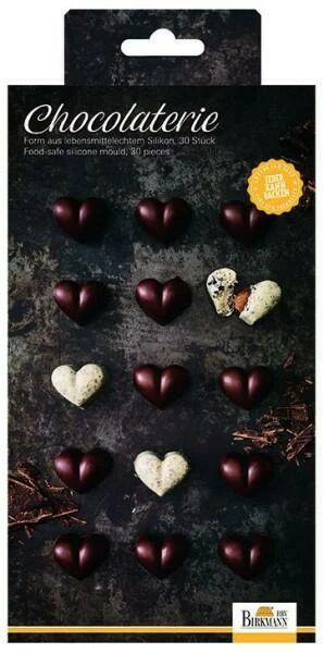 Birkmann Pralinenform Herz. Die Silikonform für 30 Herzpralinen. Aus lebensmittelechtem Silikon und mit Rezeptheft.