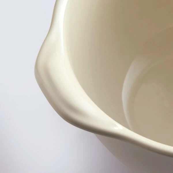 Die Schüssel aus Keramik ist extrem hitze- und kältebeständig und kann aus dem Gefrierschrank in den Ofen, in die Mikrowelle oder auf den Herd und dann direkt auf den Tisch. Die Auflaufschale von Emile Henry ist dank der Keramik außerdem kratzbeständig, leicht zu reinigen und sogar spülmaschinenfest.