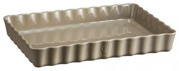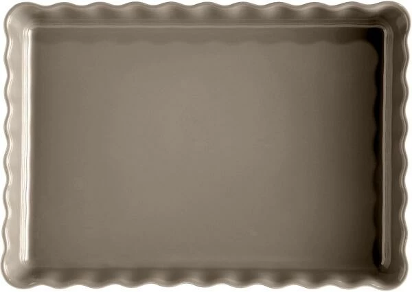 Emile Henry Kuchenform rechteckig in steingrau. In der breiten Keramikform lassen sich neben saftigen Kuchen auch knusprige Aufläufe, Gratins, Quiches und Tartes zubereiten.