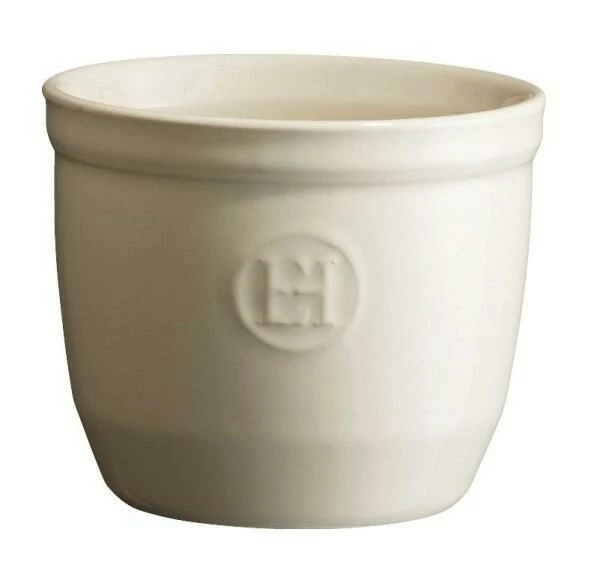 Emile Henry Töpfchen Nr. 8 in ton. Besonders hoch für die Zubereitung für Soufflés, Panna Cotta oder Muffins.