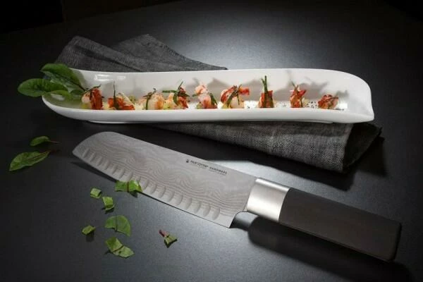 Die Messer der Serie Absolute ML von Felix Zepter vereinen Solinger Knowhow und fernöstliche Technik: 66 Lagen japanischer Stahl und somit eine Festigkeit von bis zu 62 Rockwell. Ein atemberaubender Schnitt und kaum stumpf zu kriegen. Zur Widerstandsfähigkeit tragen weiterhin die lebensmittelechten Griffe bei, die aus glaskugelverstärktem PA6-Polyamid hergestellt sind. Absolute ML verbindet diese langlebige Technik mit emotionalem Produktdesign. Deshalb wurde die Serie auch mit einer seltenen Auszeichnung für eines der 50 schönsten Konsumprodukte der Welt bedacht: dem iF Design Gold Award 2007.