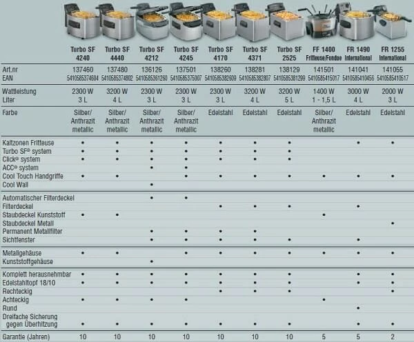 Fritel Fritteuse FR 1455, 3 Liter und 2.000 Watt. Die Fritel Fritteuse FR 1455 verfügt mit 3 Liter Inhalt und einem großen praktischen Korb aus Edelstahl 18/10, der leicht herauszunehmen ist und über eine Frontplatte aus Edelstahl.