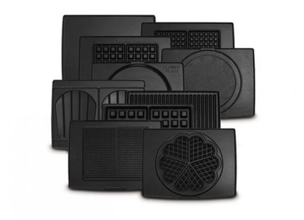 - extra verfügbare Platten: Brüsseler/Lütticher Waffeln(4×6), Herzförmige Waffle, Pfannkuchen, Hörnchen, Teppanyaki, Madeleines, Traditionnelle Waffeln (6 x 10), Gefüllte Waffeln, Crispy Waffle/Butter Waffle (16×28), Poffertjes/blinis, Sandwiches, Gaufrettes, Geribbeld