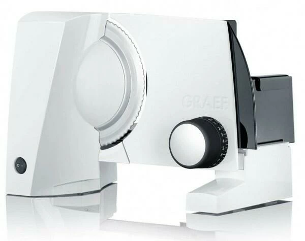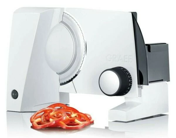 GRAEF Allesschneider Sliced Kitchen SKS 10001 in weiß. Schnell und präzise verwandelt der neue Allesschneider von GRAEF alle Ihre Zutaten in hauchdünne Scheiben, wodurch sich die Aromen noch intensiver entfalten können. Zusätzlich glänzt der Allesschneider durch Sicherheit, Qualität, Komfort sowie raffinierten, innovativen Details. Das ideale Einsteiger-Modell im edlen Design.