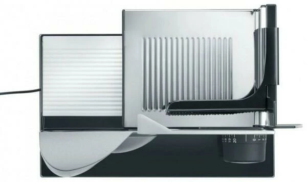 - Material: Vollmetallausführung, Glasbodenplatte,Wellenschliff-Vollstahlmesser aus einem Stück rostfreiem Edelstahl in Gewerbequalität, Schlitten und Messerabdeckplatte aus Kunsstoff