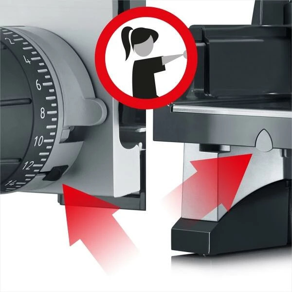 Schneidemaschine durch ihren hohen Bedien- und Reinigungskomfort sowie praktisches Zubehör. Mit dem MiniSlice Aufsatz können auch kleinere Zutaten sicher und komfortabel geschnitten werden: Durch einen Einfüllschacht fallen Gemüse, Obst oder Salami dem Messer einfach mittels Schwerkraft entgegen. Auch kleine Kartoffeln oder Pilze können mit hoher Geschwindigkeit ohne Reste und ohne Verletzungsgefahr in dünne Scheiben geschnitten werden. Durch den dünnen Schnitt kann sich das Aroma der Zutaten intensiver entfalten und verkürzt zusätzlich auch die Garzeit beim Kochen.