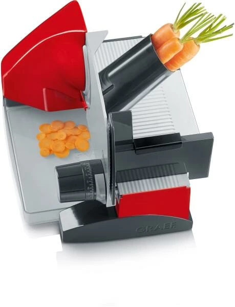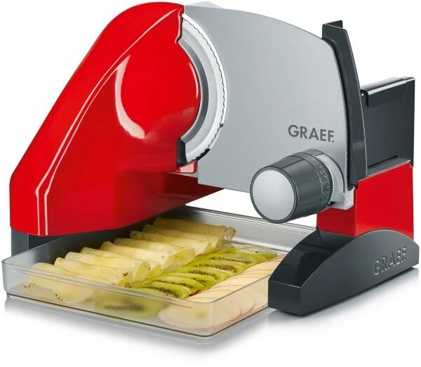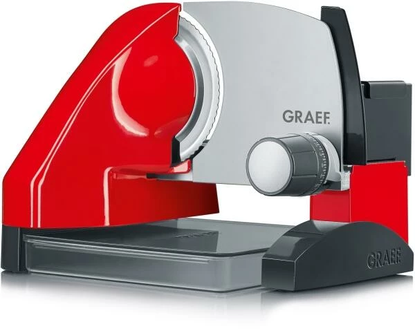 GRAEF Allesschneider Sliced Kitchen SKS 500 in rot. Vielseitiger Familien-Allesschneider ’Made in Germany’. Verwandelt all Ihre Zutaten in hauchdünne Scheiben, wodurch sich die Aromen noch intensiver entfalten können. Neue, erhöhte Bauweise ermöglicht Schneiden direkt in die Aufbewahrungsbox oder die Auflaufform. Inklusive MiniSlice-Aufsatz und Aufbewahrungsbox.