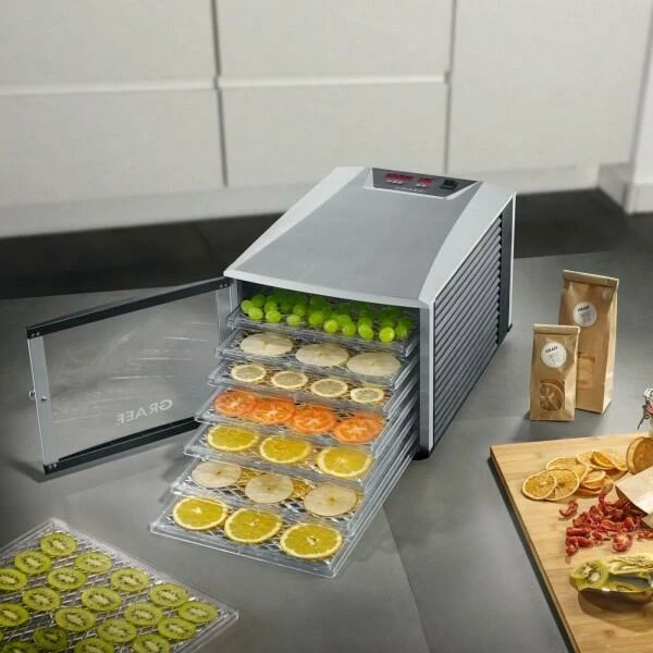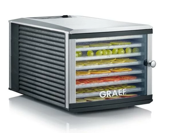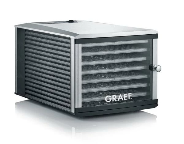 Graef Dörrautomat DA 508 mit 8 Einschüben. Ideal zum Trocknen von z.B. Fisch, Obst, Gemüse, Kräutern sowie Beef Jerkys, als auch zur Herstellung von Joghurt geeignet.
