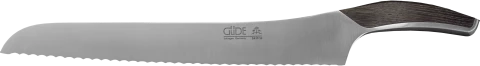 Güde-Wellenschliff erleichtert vor allem das Schneiden von Broten mit sehr harter Kruste aber weichem Kern. Das Güde Synchros Brotmesser ist auch ideal zum Zerteilen von großen Gemüseköpfen, Melonen und Kürbissen sowie großen Bratenstücken. Die Griffe der Synchros-Reihe von Güde sind aus Räuchereiche und haben mit 12,5 cm alle die gleiche Länge. Sie sind demnach unabhängig von der Klingenlänge und passen sich dem Nutzer perfekt an. Die Klingen der Serie sind bis zum Bart durchgeschliffen.