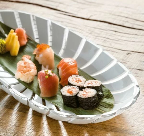Die ovale Servierplatte der Serie Grace von Guzzini ist schlicht und doch reizvoll. Transparente und undurchsichtige Schichten aus Acrylglas mit unterschiedlicher Stärke und Materialschichten werden durch ein aufwendiges Herstellungsverfahren übereinander gelagert, wodurch die Servierplatte ihre besonders noble und kunstvolle Optik erhält. Egal ob Sie kalte Vorspeisen wie z.B. Mozzarella Caprese, Salate, Obst oder kleine Häppchen für Ihre Gäste servieren möchten, mit dieser Servierplatte im modernen guzzini Design gelingt Ihnen das mühelos. Lebensmittelecht, spülmaschinenfreundlich und BPA-frei ist diese Servierplatte vielseitig einsetzbar sowie langlebig und kann z.B. auch als Dekoschale für das Wohnzimmer genutzt werden.