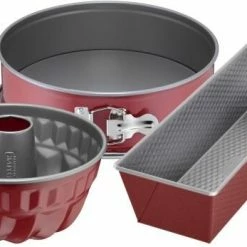 Drei Backformen in einem Set – mit dem Backset erhalten Sie die wichtigsten Backformen wie eine auslaufsichere Springform, eine Gugelhupf Backform und eine Königskuchen- Kastenform. Die Grundausstattung für jeden Haushalt eignet sich für Tortenböden und Kastenkuchen, Marmorkuchen, Pizza, Quiche und andere Gebäckarten.