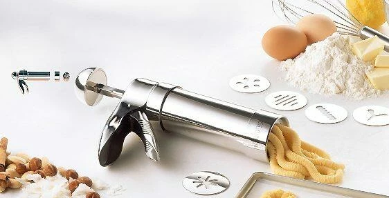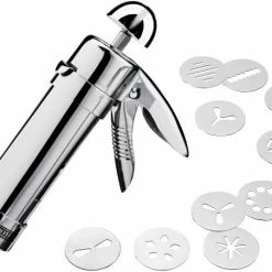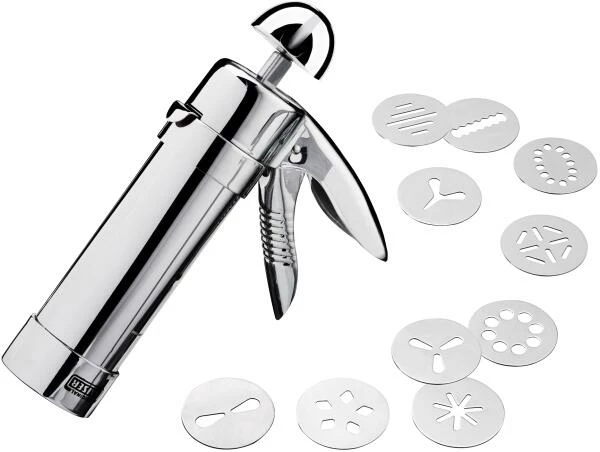 Gebäckpressen Set. Gebäckpresse mit 10 Gebäckscheiben aus Edelstahl.