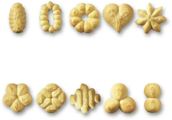 Auf die Plätzchen, fertig los! Einfach Gebäckpressen-Einsatz mit gewünschter Gebäckscheibe kombinieren. 10 verschiedene Gebäckscheiben zaubern blitzschnell Abwechslung aufs Backblech.