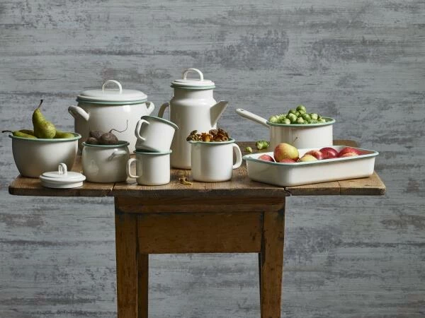 Der Schüsseln aus Emaille sind beim Kochen, Zubereiten und Servieren vielseitig einsetzbar. Am Frühstückstisch sind sie ideal für Müsli und Obst, beim Mittagstisch servieren sie Dips und weitere Beilagen und zwischendurch finden in ihnen Nüsse und Snacks dekorativ Platz.