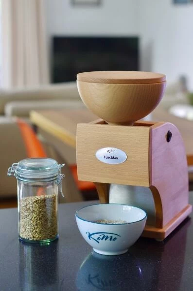 KoMo elektrische Flockenquetsche FlocMan. Die Flockenquetsche FlocMan ist geeignet für alle Getreidesorten (außer Mais!), Ölsaaten und Gewürze.