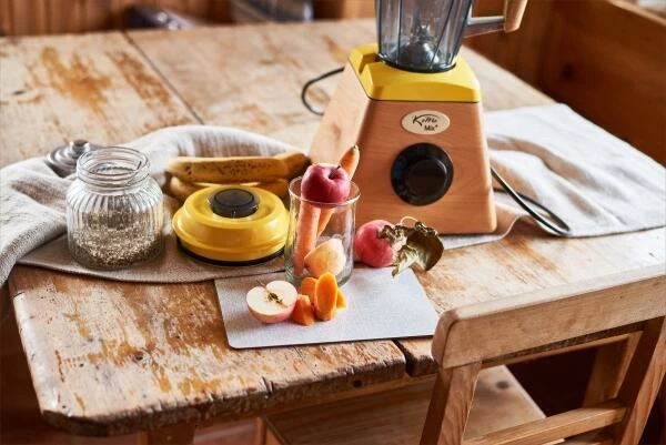 Der Hochleistungsmixer KoMoMix+ ist extrem einfach zu bedienen mit dem One Touch-Drehknopf. Es gibt keine komplizierten Programme, die nicht genutzt werden. Außerdem ist er einfach zu reinigen. Der Korkgriff und auch das 8-fach Schneidemesser (mit zwei Kugellagern) können herausgenommen werden – so kann der Behälter in die Spülmaschine gegeben werden. Zudem ist der KoMoMix+ auch in puncto Sicherheit vorbildlich: Der Behälter muss eingerastet sein, sonst läuft erstmal gar nichts. Und er verfügt über Saugnäpfe für einen sicheren Stand. Der Stößel ist so abgerundet, dass er perfekt mit der Wölbung des Behälters harmoniert.