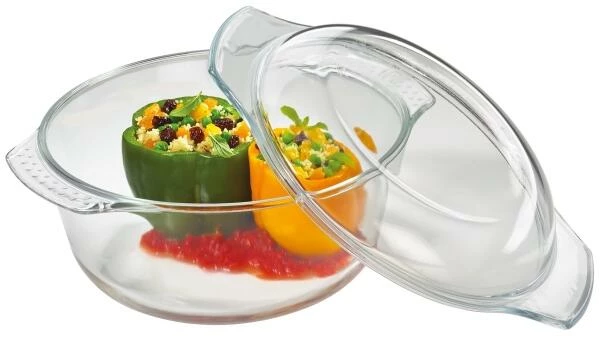 Küchenprofi Auflaufform mit Deckel Elsass rund. 4 in 1: Aufbewahren, Aufwärmen und Garen in der Mikrowelle sowie im Backofen, Servieren. Aus hoch hitzebeständigem Borosilikatglas.