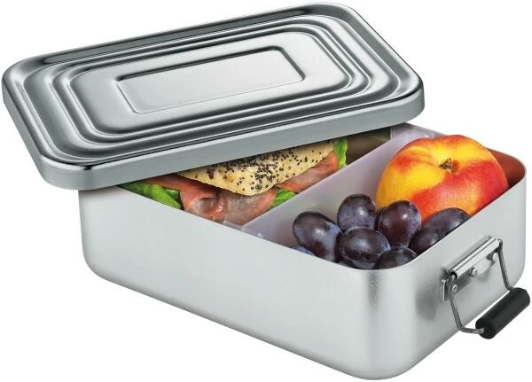 Küchenprofi Lunchbox klein, silber. Praktische Lunchbox aus eloxiertem Aluminium. Deckel mit Silikondichtung und inklusive verstellbarem Unterteiler.