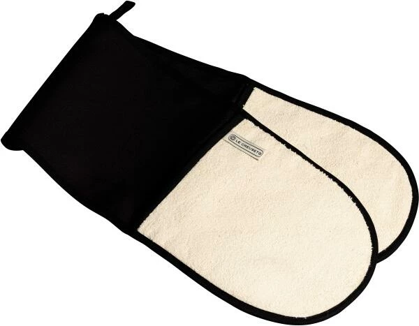 Nie wieder den zweiten Handschuh suchen: Der Doppelhandschuh lässt Sie im Umgang mit heißen Kochutensilien nicht im Stich. Er bietet einen optimalen Hitze-Schutz für beide Hände, die Arminnenseiten und den Bauch.