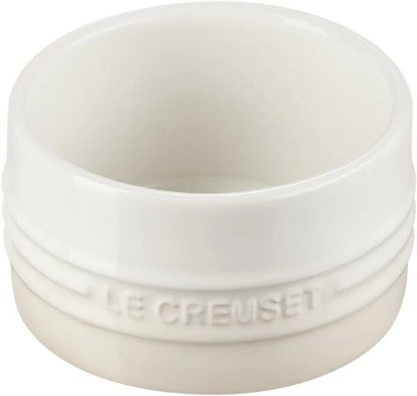 Le Creuset Förmchen in meringue. Perfekt geeignet, um einzelne Desserts, Vorspeisen, Tapas, Snacks und Häppchen zu servieren. Das hochwertige Steinzeug verteilt die Hitze gleichmäßig und die Speisen haften nicht an.