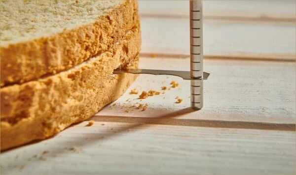 Sie können den Tortenschneider stufenlos in der Höhe verstellen. So bekommt Ihr Boden genau die von Ihnen gewünschte Stärke. Wichtig ist für ein gerades Ergebnis dabei, auf beiden Seiten die glei-che Höhe einzustellen. Die an den Außenstäben angezeichneten Markierungen helfen Ihnen dabei. Die Markierungen beginnen in einer Höhe von 7mm, weitere folgen in 4mm Schritten.