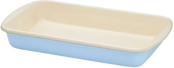 Riess Auflaufform aus Emaille 36×21,5 cm in pastell-blau. Die Emailleform mit Bördelrand ist ideal für Aufläufe, Gratins, Lasagne, aber auch für Kuchen und Strudel geeignet. Die Auflaufform ist rechteckig ohne Griffe und natürlich backofengeeignet.