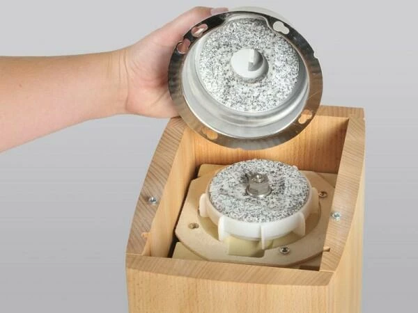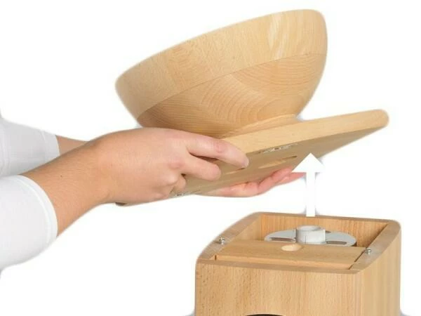 Die langlebigen Korund- Keramik- Mahlsteine in der Mühle werden von einem 360 Watt Industriemotor angetrieben Der Metalltrichter hat ein Fassungsvermögen von 1400 g. Einzigartig: der Trichter lässt sich zum Wiegen des Mahlgutes einfach abnehmen und verschließen. Die Getreide-Stopp-Funktion ermöglicht eine Portionierung des im Trichter befindlichen Mahlgutes.