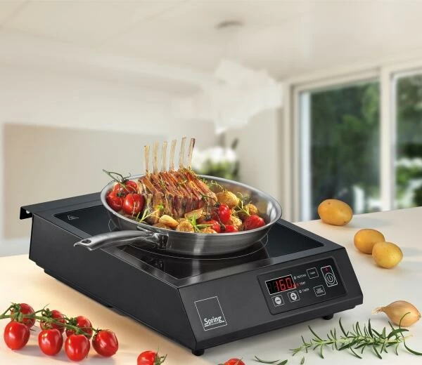 Spring Induktionsgerät 3.5 kW in schwarz. Leistungsstarkes, freistehendes Induktionskochfeld mit Warmhaltefunktion.