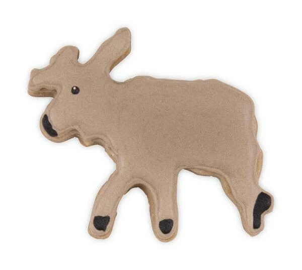 Lustiger Elch auf Wanderschaft. Für schmackhafte Elch-Kekse oder zum Basteln in der Adventszeit.