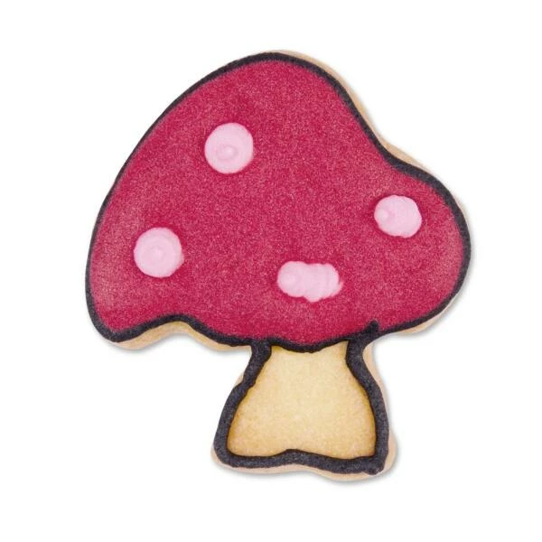 Unser Präge-Ausstecher ergibt eine typische Pilzform sowie die für manche Pilzarten charakteristischen weißen Flecken als Prägung.