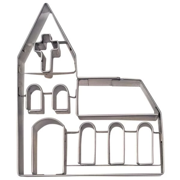 Dieser Ausstecher formt eine klassische Kirche mit Kirchturm, Schiff, Fenstern und Tür. Schönes Motiv für Taufe, Kommunion/Konfirmation und Hochzeit.