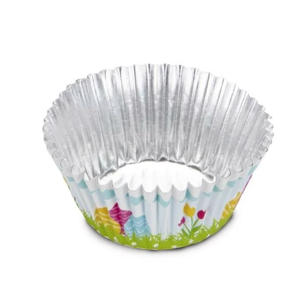 Aus backfestem Papier mit aluminiumbeschichteter Innenseite. Antihaft-Effekt. Nicht über 220 °C verwenden. Nicht in der Mikrowelle verwenden.