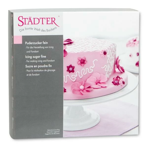 Allerfeinster Puderzucker! Dieser feine Puderzucker ist besonders gut geeignet für die Herstellung einer Zuckermasse (Icing) zum Spritzen von Blüten, Blättern und feinster Tortendeko sowie zur Fondantherstellung.