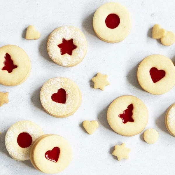 Mit diesen Ausstechformen können Sie Ober- und Unterteil der beliebten Spitzbuben ausstechen. Für die Oberteile stehen Ihnen vier Motive zu Auswahl. Mit dem Außenring können Sie nun die Unterteile für die Spitzbuben ausstechen. Beide Teile nun backen und mit etwas Gelee, Marmelade, Zuckerguss oder Nussnougatcreme aufeinandersetzen – fertig. Viel Spaß beim Backen und Verzieren!