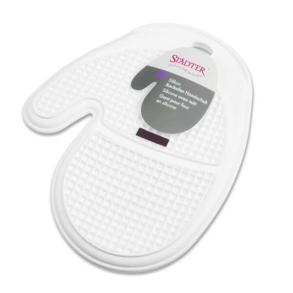 Wenn’s heiß hergeht – schützender Silikon-Handschuh zum gefahrfreien Bewegen heißer Bleche. Farbe: Weiß.