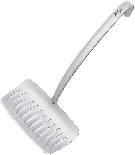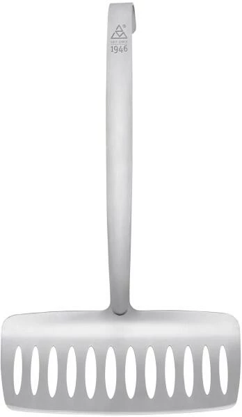 Zu der Serie „1946“ ihr gehören Küchenhelfer für jeden Tag, sämtlich neu durchdacht und einzigartig in ihrer Handhabung. Aus gebürstetem 18/10 Edelstahl und mit einer massiven Materialstärke sind sie unverwüstlich und bestreiten den rauen Gastronomiealltag ebenso souverän wie sie am Buffet und im Haushalt durch Ihre Formschönheit beeindrucken. Alle Teile der Serie wurden auf den Prüfstand gestellt und in ihrer Funktion optimiert. Suppen- und Saucenkelle gießen tropffrei, Wender und Löffel sind stark und ergonomisch und der Schaumlöffel sorgt durch große, eckige Löcher für perfektes und verstopffreies Ablaufen von Flüssigkeiten. Eine weitere Besonderheit sind die beiden flexiblen Wender aus Edelstahl und Nylon. Ihre Laffe ist sehr dünn, aber dennoch stabil und hochflexibel. So gleiten sie leicht unter empfindliche Speisen wie Spiegelei, Jakobsmuscheln oder feines Gebäck und heben und wenden ohne Bruchgefahr. „1946“ vereint triangles Kernwerte Qualität, Funktionalität und Nachhaltigkeit in Perfektion. Und so wäre auch Firmengründer Erwin Hill, der 1946 den Grundstein zu triangle legte, stolz auf diese Serie gewesen und hat so zu ihrem Namen inspiriert. Rostfrei und spülmaschinengeeignet.