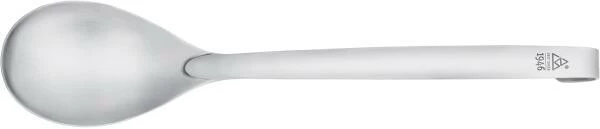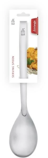 Servierlöffel „1946“. Zu dieser Serie gehören Küchenhelfer für jeden Tag, sämtlich neu durchdacht und einzigartig in ihrer Handhabung. Aus gebürstetem 18/10 Edelstahl und mit einer massiven Materialstärke sind sie unverwüstlich und bestreiten den rauen Gastronomiealltag ebenso souverän wie sie am Buffet und im Haushalt durch Ihre Formschönheit beeindrucken. Alle Teile der Serie wurden auf den Prüfstand gestellt und in ihrer Funktion optimiert. SuppenSaucenkelle gießen tropffrei, Wender und Löffel sind stark und ergonomisch und derSchaumlöffel sorgt durch große, eckige Löcher für perfektes und verstopffreies Ablaufen von Flüssigkeiten. Eine weitere Besonderheit sind die beiden flexiblen Wender aus Edelstahl und Nylon. Ihre Laffe ist sehr dünn, aber dennoch stabil und hochflexibel. So gleiten sie leicht unter empfindliche Speisen wie Spiegelei, Jakobsmuscheln oder feines Gebäck und heben und wenden ohne Bruchgefahr. „1946“ vereint triangles Kernwerte Qualität, Funktionalität und Nachhaltigkeit in Perfektion. Und so wäre auch Firmengründer Erwin Hill, der 1946 den Grundstein zu triangle legte, stolz auf diese Serie gewesen und hat so zu ihrem Namen inspiriert. Rostfrei und spülmaschinengeeignet.