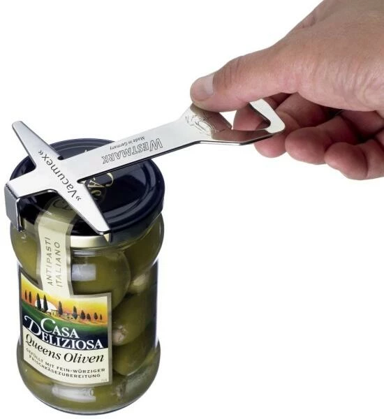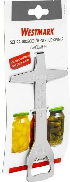 Westmark Schraubdeckelöffner Vacumex. Praktischer Helfer, mit dem dank kraftsparender Hebelwirkung mühelos Gläser geöffnet werden können. Mit extra Flaschenöffner.