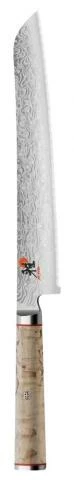 Zwilling Miyabi Brotmesser 5000MCD. Mit der langen und kräftigen Wellenschliff-Klinge ist es ein Leichtes, die grobe und knusprige Brotkruste zu durchbrechen, um Brotscheiben gleichmäßig zu schneiden. Der Allrounder für Profis und Hobbyköche.